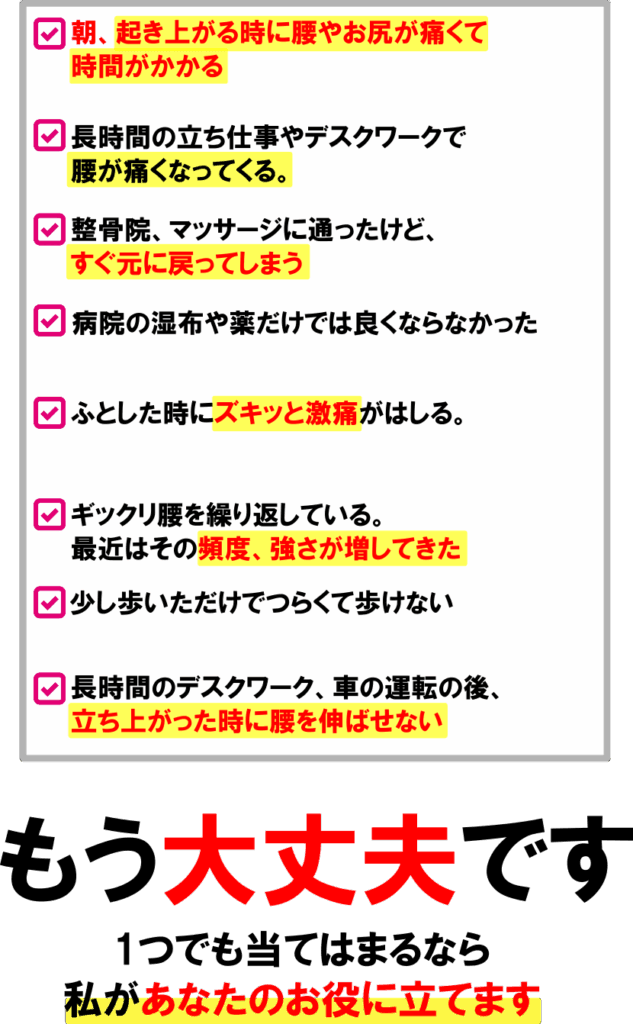 もうこの腰痛をなんとしてでも改善したい!本気で治したい!