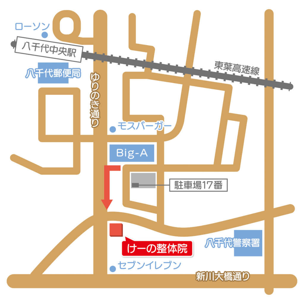 八千代緑が丘駅から1駅、八千代台駅からいらっしゃる方は勝田台駅で東葉勝田台駅に乗り換え東葉高速線へ