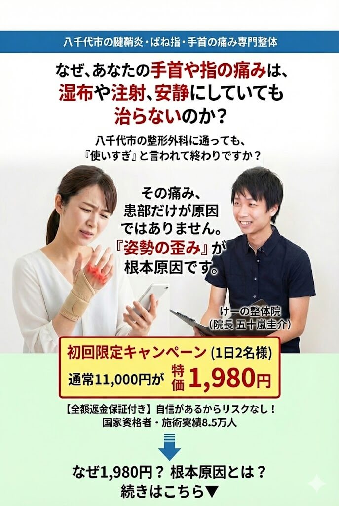 八千代市にある 腱鞘炎・ばね指専門整体 なぜ、初回1,980円なのか?